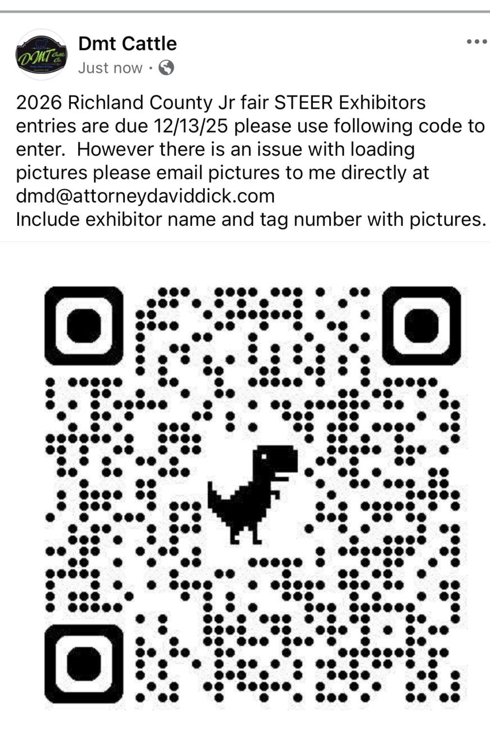 JR Fair STEER Entries are due 12/13/2025. Please see below: